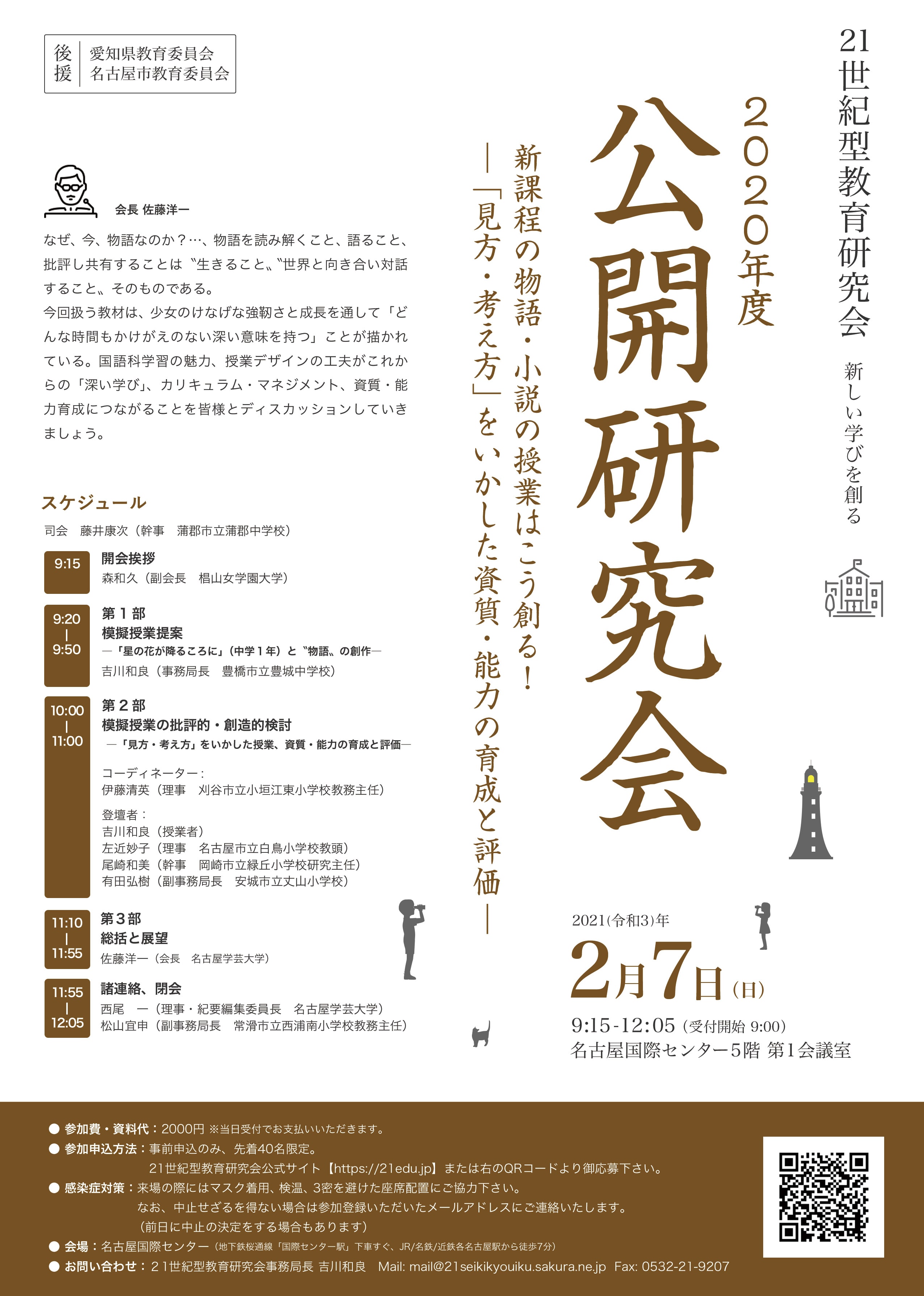 「21世紀型教育研究会」は、佐藤洋一教授(現・名古屋学芸大学学部・大学院教授、前・愛知教育大学教職大学院教授、同大学名誉教授)を中心とした、小中学校、高等学校、大学の教員、さらに教員を志望する学生等による約40名の集まりです(2015年4月設立)。